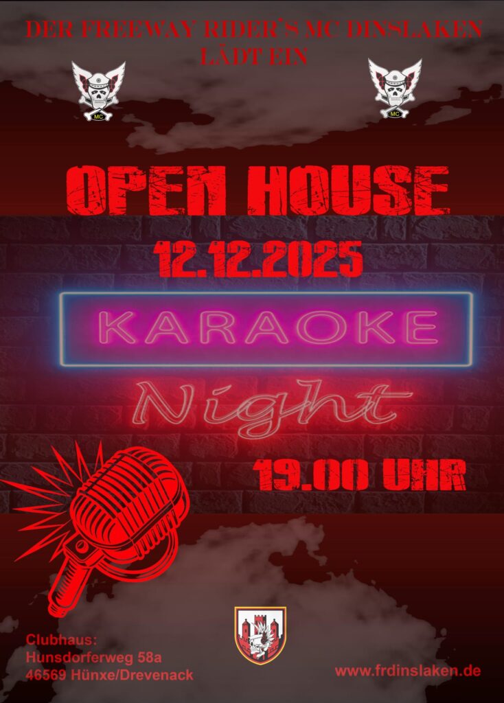 Am 2. Freitag im Monat öffnen wir unser Clubhaus in Drevenack. Jeder ist Willkommen. Bei Getränken, leckerem Essen und guter Musik. Geöffnet ist ab 19 Uhr. Aktuelle Infos zu den Offenen Abend findet ihr auf unserer Homepage. In den Monaten März und Oktober Veranstalten wir zusätzlich eine Live-Bühne mit Livemusik.